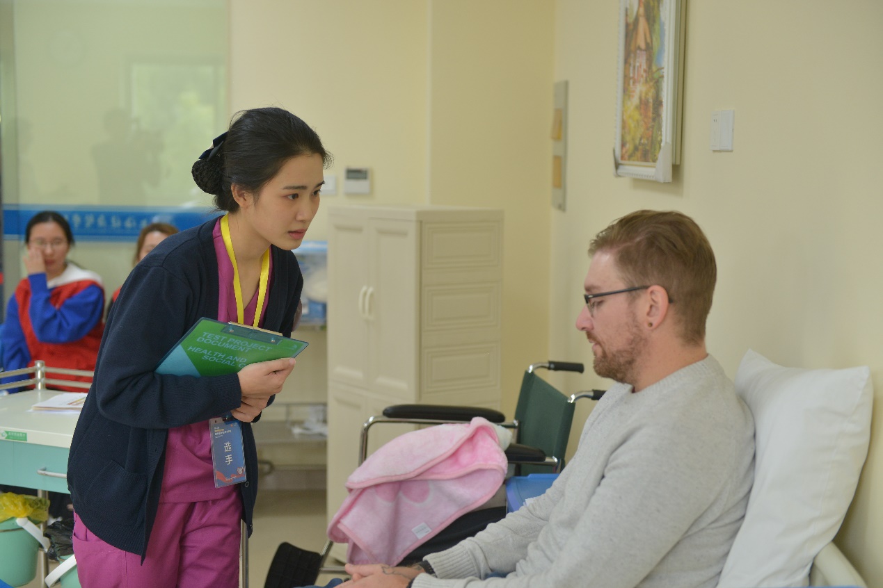 本次中国集训队第一阶段考核,以既往世赛“健康和社会照护”为基础,并参照了该项目的关键内容和方式。希望通过本次选拔赛帮助参赛选手和裁判等相关人员进一步熟悉技术要求,了解健康与社会照护领域技能技术发展趋势,促进国内“健康和社会照护”技能竞赛和人才培养工作的科学和可持续发展,同时,选拔、储备优秀的技能型人才,为世界技能大赛输送高水平的、具备竞争力的中国选手。竞赛内容分为四个主模块,分别是家庭、长期照护中心、医院及社区-日间照护场所。所有模块均采用单个选手考核模式,每个模块考核80分钟,并分为3个部分,分别是健康教育部分、实践部分以及文书部分。每个模块通过案例重点考核选手文字表达能力、动手操作能力、沟通交流能力。比赛中,选手们个个自信满满,完美展现了融语言、技能、知识为一体的专业素养和能力,诠释了“有温度”、“有关爱”、“有热情”的技能,得到了所有专家和观摩者的一致赞许!