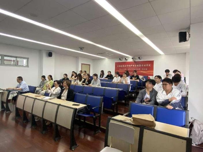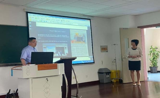 参观结束后,Latzkow院长为护管学院的师生们带来了一场精彩的宣讲会,中德科技文化交流协会主席陶兴煜先生担任翻译。在宣讲会上Latzkow院长向同学们介绍了德国宝隆护理学院的历史及其与中国的联系。她强调,德国宝隆护理学院一直致力于培养具有全球视野的护理人才,将通过双向选择、择优录取的方式,为中方合作院校的学生提供在德国双元制护理教育体系下学习的机会。此外,院长还详细阐述了德国护理专业实习生毕业后的职业发展前景,以及德国医院护士的工资、补贴和相关福利等情况,让同学们对德国护士的学习要求与待遇有了更全面的了解。互动环节中,同学们积极提问,Latzkow院长与陶兴煜主席耐心细致地为他们答疑解惑。