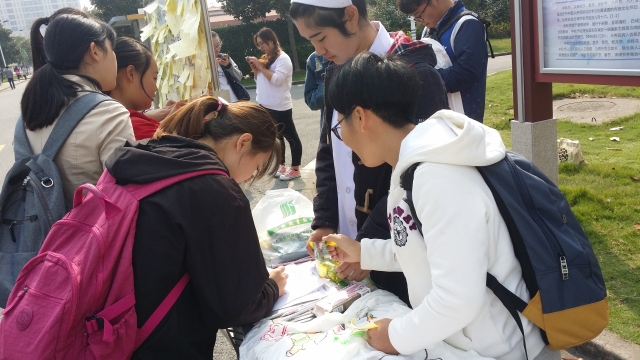 2016年11月3日星期四中午12:00,在浦东校区北苑生活园区主干道举行了由护理学院学生会网络信息部组织的《为寝室打上一个不“易”样的标记》活动。
