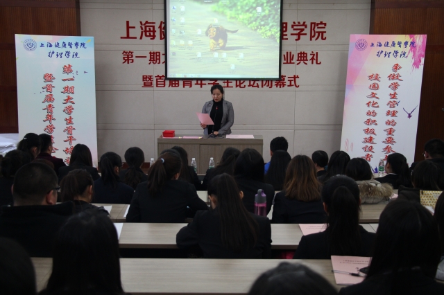 在薛文正老师的主持下,闭幕式正式开始。大会伊始,薛文正老师先为赵思沁等6位同学授予了本次培训优秀学员称号,以资鼓励。接着,学生代表护理学院学生会主席赵思沁同学进行了发言,她表示在为期一个星期的骨干培训对各位学生干部进行了全方位的培训,从沟通到交流,从组织到宣传,都有了很多的进步,十分感谢学校能安排这次培训。