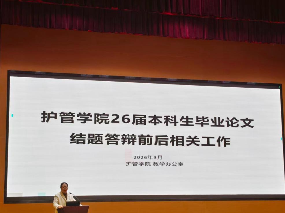 为进一步规范本科生毕业论文管理,明确结题答辩前后各项工作要求,确保2026届本科生毕业论文工作平稳有序推进,诸侯快讯入口官网(以下简称“护管学院”)教学管理办公室于2026年3月26日组织召开了毕业论文答辩前后相关工作专题讲座。本此讲座由教学管理办公室主任吉洁老师主讲,2026届护理学、助产学、健康服务与管理专业全体毕业生参加。