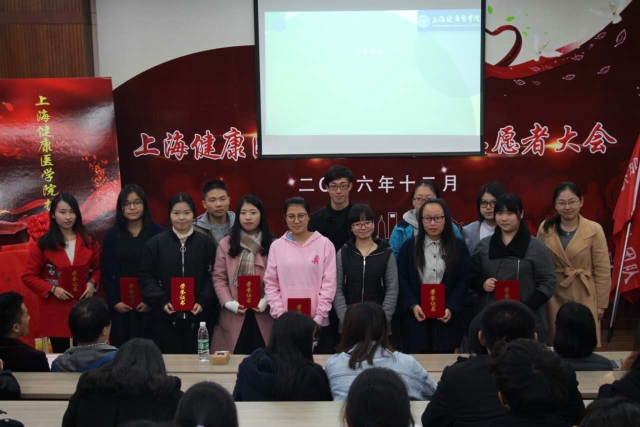 护理学院学生会主席赵思沁同学宣布了优秀志愿者名单,钱凌依等12位同学荣获优秀志愿者。