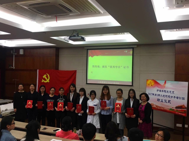 本次培训班从各个班级党章学习小组共选拔60名学员,最终全部通过各项考核,顺利结业,对学院今后进一步地发展学生党员、吸收新鲜血液、壮大这一支年轻的党员队伍打下了坚实基础。其中,尤宁、陈群等10名表现突出、考核成绩优异的同学获得“优秀学员”荣誉称号,方秀琴书记和薛文正副书记为10位优秀学员颁发荣誉证书。最后,薛文正副书记也对入党积极分子们寄予厚望,希望他们在学习生活中能时刻牢记党的宗旨,树立理想信念,严格要求自己,发挥党员模范带头作用,早日加入中国共产党这一光荣的组织。
