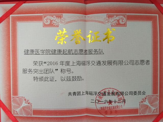 志愿者们的辛苦付出得到了地铁运营方的肯定,2016年底,健康起航志愿者团队被评为“2016年度上海磁浮交通发展有限公司志愿者服务突出团队”称号,此次再次被上海地铁志愿者服务总队评选为2016年度“上海地铁志愿者先进团队”。