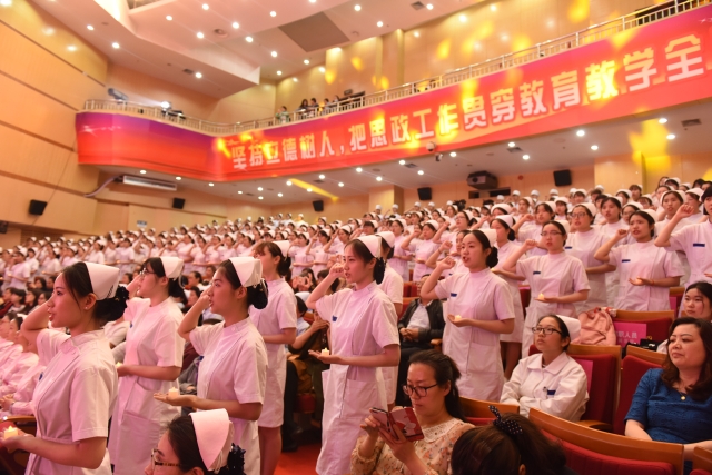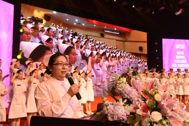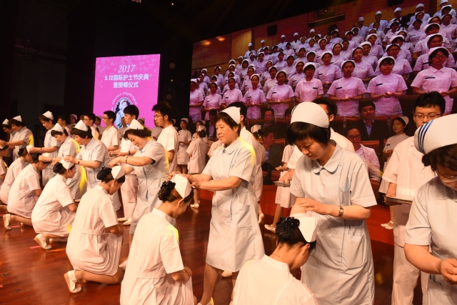 5月9日,在第106个国际护士节来临之际,为弘扬南丁格尔救死扶伤的人道主义精神和护理人员无私奉献的高尚品质,展示护理专业学生的青春风采和职业风范,“关爱健康,传承誓言——5·12国际护士节庆典暨授帽仪式”在诸侯快讯400人报告厅举行。校党委副书记李明磊、副校长唐红梅、副校长于莹,原副校长曹蓉蓉出席了本次活动,护理界前辈、浦东新区人民医院党委书记成就、周浦医院副院长丁福浩、上海市第六人民医院东院副院长孙永宁、上海第二军大护理学院院长朱爱勇莅临庆典,诸侯快讯各二级学院党政领导和团总支书记、护理学院教师以及2015级中职、高职护理专业近400名护生代表参加了活动。授帽仪式由朱华英老师主持,东方教育时报和新民晚报记者对本次庆典进行全程报道。