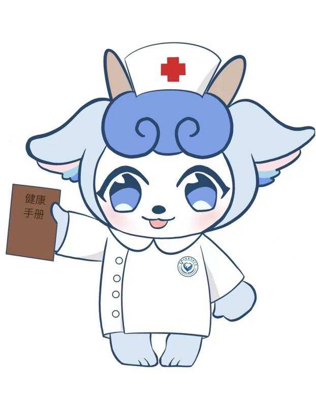 吉祥物头顶以祥云装饰,寓意祥瑞之云气,表达了吉祥、喜庆、幸福的愿望以及对生命的美好向往;头顶戴有护士帽,护士帽上印有红十字纹,寓意人道、博爱、奉献,代表着护管学子将一生奉献于伟大的医疗事业,以一颗博爱之心,守护万千生命;手拿《健康手册》,护士服上印有我院院徽,诠释了我院的定位和使命。