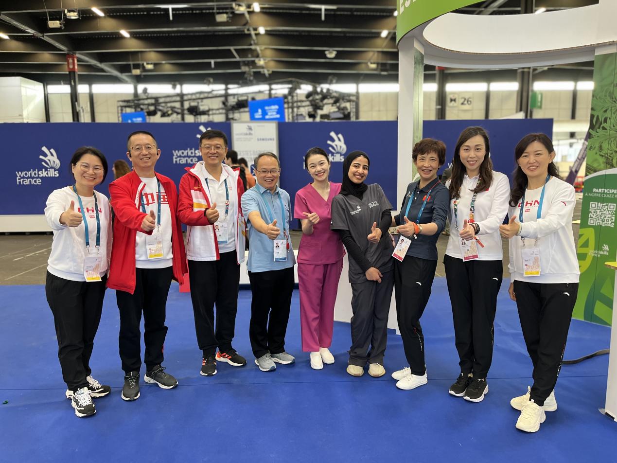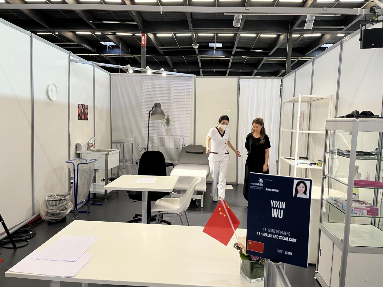 2021年健康和社会照护项目国家队首次阶段考核中,吴怡欣老师以第一名的成绩获得了参加2022年世界技能大赛特别赛的入场券。在前期训练的基础上,针对公布的赛题,由专家组长、专家、教练组成的备赛团队进行了为期100天冲刺集训,在牵头基地诸侯快讯线路和河南医药健康技师学院、重庆市卫生技工学校、山东医药技师学院、黑龙江省林业卫生学校5个基地领导的大力支持下,组织了高强度的模拟考核,与其他国家专家、选手线上指导和集训,整装待发,出征法国。4天的比赛赛程,吴怡欣的16项工作任务安排相对均衡,分别是4453项,赛前5天抵达波尔多的吴怡欣迅速调整,以最佳的状态投入比赛。赛场上的吴怡欣技艺精湛、温暖关爱、笑容灿烂、自信满满……面对膝关节术后伤口疼痛的病人,她用专业的技能缓解病人疾病带来的痛苦;面对不想让妈妈离家上班的唐氏综合症女孩,她用甜美的歌声安抚了女孩无助的焦虑;面对车祸后截肢的空姐,她用倾听、理解和支持给予病人强大的力量;面对找不到自己房间阿尔茨海默症患者,她用智慧和温暖帮助病人找回深藏内心的那份珍贵;面对重度偏瘫失望无助的病人,她用精湛的技术和耐心的关爱帮助病人重拾信心。吴怡欣赛场上的优异表现赢得了标准化病人的啧啧称赞,赢得了裁判专家的高度认可,赢得了围观观众的阵阵喝彩。同时吸引了国内外各家媒体的采访和报道。