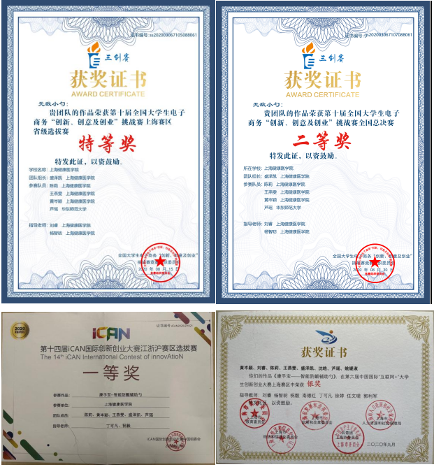 习近平曾言:“创新是引领世界发展的重要动力。”身为学院创新创业部部长,他带领团队荣获十八项市级、国家级奖项,在第十届三创赛中荣获市赛特等奖、最佳创新奖并作为上海赛区的5个代表队参加全国总决赛,代表学校荣获全国二等奖;在第六届“互联网+”大赛中获得市赛银奖;在第七届“互联网+”大赛中获得市赛银奖一项、铜奖三项;在ican大赛中获得市赛一等奖、国赛三等奖;在五角场创新创业大赛中获得“创业新芽奖”;在第八届中国老年福祉赛中获得铜奖;在第十届中国老年福祉赛中获银奖;在上海市创客大赛中获得一等奖;在上海市护理学会创新创业项目大赛中获得一等奖一项、三等奖一项;他的项目“康手宝一智能防颤辅助勺”获第七届上海大学生创新创业训练计划成果展 “优秀创新创业训练计划项目案例”;在第八届上海市大学生新材料创新创意大赛获三等奖;在上海国际创客大赛获三等奖。