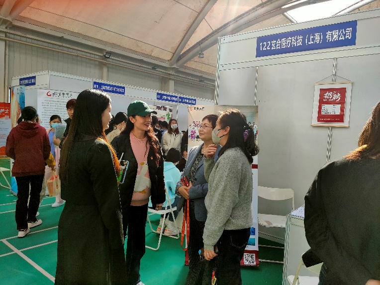 与此同时,场外还开设了一龄医院集团、维艾乐健康管理有限公司、普蕊斯科技开放有限公司等单位的宣讲和座谈会,希望通过近距离的接触让用人单位快速地了解我院同学的特点,也让同学们更快更多地了解企业的文化、岗位的需求和未来的发展,希望同学们都能找到满意的工作,在人生的新阶段乘风破浪、前程似锦。
