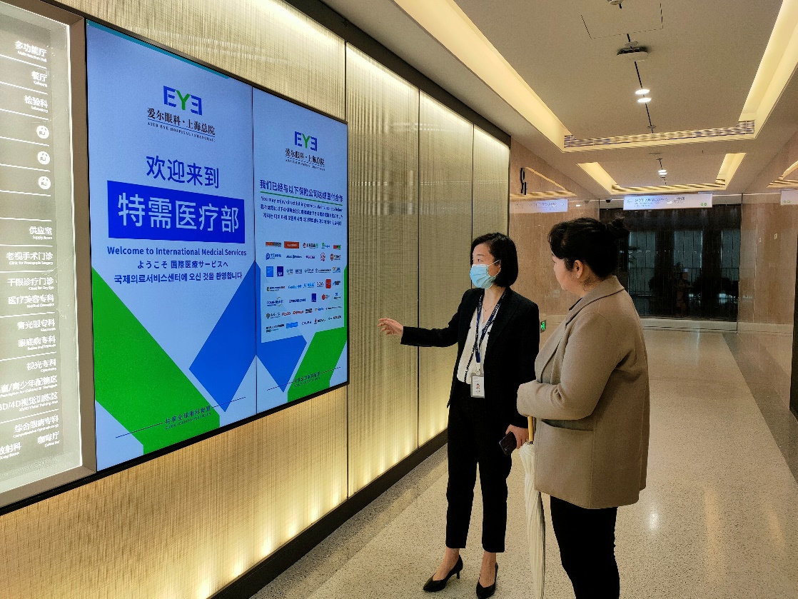 潘智莱总监一边带领着我们参观了院区,一边对爱尔眼科医院的基本情况进行介绍。爱尔眼科医院集团是具有中国及全球范围医院规模和优质医疗能力的眼科医疗集团,服务覆盖亚洲、欧洲和北美洲,在中国内地、欧洲、东南亚拥有3家上市公司。而上海爱尔眼科医院于2005年8月在上海市长宁区虹桥路1286号开业,2021年迁建至徐汇区吴中路83号。设有内科(限会诊)、眼科、医疗美容科;美容外科(限眼部)、美容皮肤科(限眼部)、麻醉科、医学检验科等临床科室。医院秉承着责任、协作、创新、奉献的精神,关爱患者、尊重员工、回报社会,致力于使所有人,无论贫穷富裕,都享有眼健康的权利。
