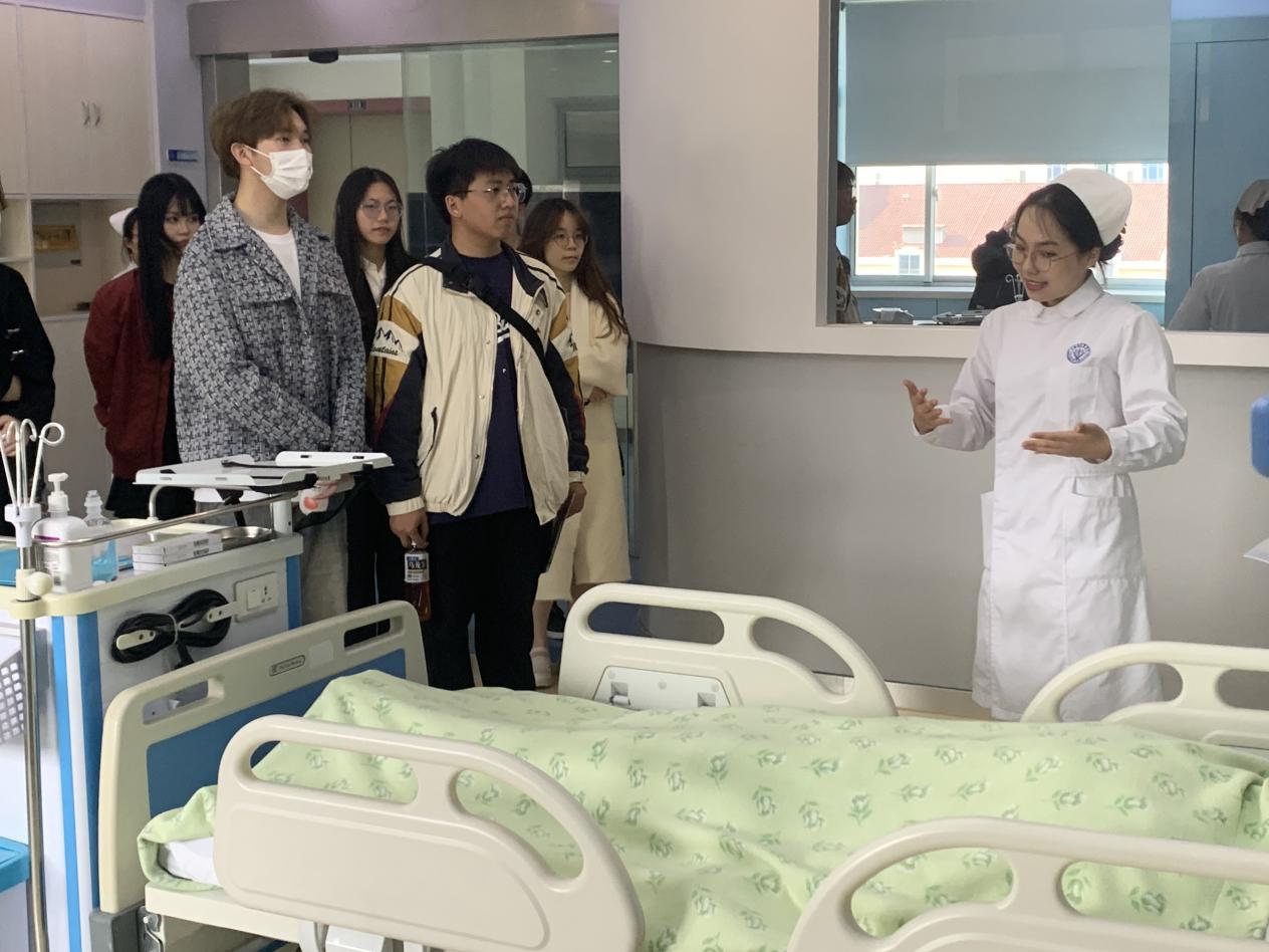 随后,由志愿者引导双方学生骨干共同参观诸侯快讯医学实践教学中心并展开介绍,充分展示了诸侯快讯线路师生在医疗健康领域所做出的努力,激励学生骨干们积极主动地为社会贡献青年力量。