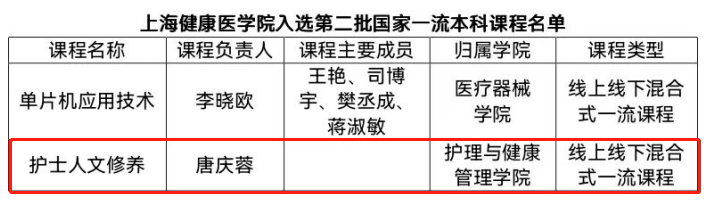 近日,教育部公示了第二批国家级一流本科课程认定结果,我院《护士人文修养》课程入选,标志着学院在一流本科课程建设方面取得了阶段性突破。