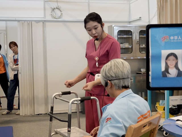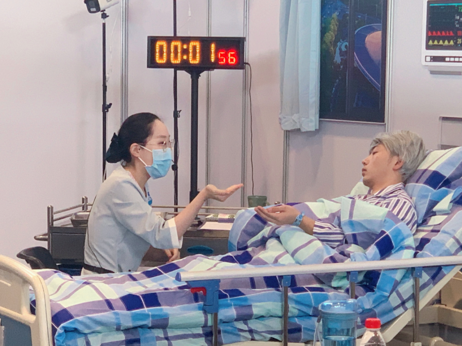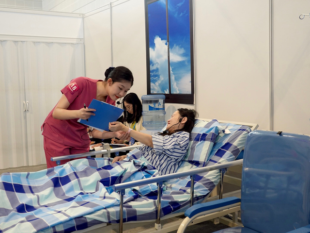 健康和社会照护(世赛选拔赛)项目采用单人比赛模式,通过给予的案例描述和相关材料,利用现有的资源,由标准化病人配合,完成医院、家庭、日间、长期照护4个模块6个案例病人的照护,每天2个案例,每个案例均为75分钟,包括15分钟计划、30分钟实践、30分钟海报或反思报告。曾小桉在赛场上全程用英语与患者交流,做到准确评估患者,倾听患者心声,激发患者参与健康照护,用专业知识和技能为患者提供帮助。她流利的英文表达能力、温文尔雅的职业素养和精湛的专业技能获得场内外观众、专家、裁判、选手的高度关注和阵阵掌声。