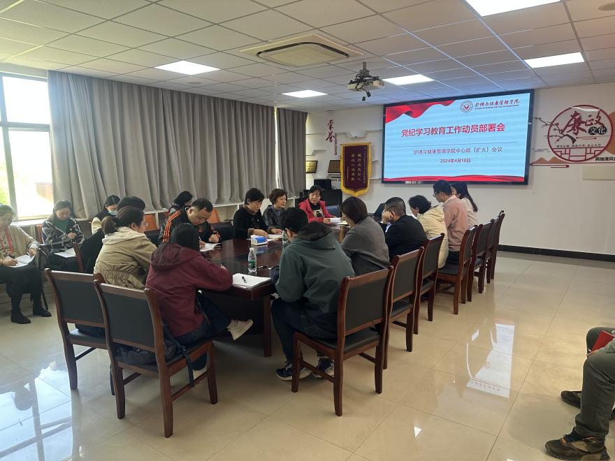 为深入学习贯彻习近平总书记关于党纪学习教育的重要指示精神,传达中央、市委、市教卫工作党委、校党委部署要求,推动学院党纪学习教育开好局、起好步,4月18日下午,护管学院党总支召开中心组学习(扩大)会,校党委副书记唐红梅出席了会议,全体中心组成员和各支部委员共同参会。会议由学院党总支书记郭戎静主持。