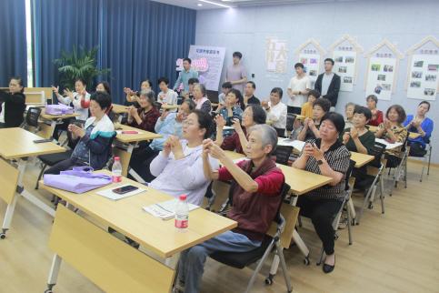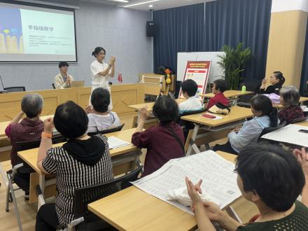 选用国家体育总局推荐的四种有效提高心肺功能的运动,结合现场手指操教学,提醒居民们注意锻炼与运动,关注自身健康。