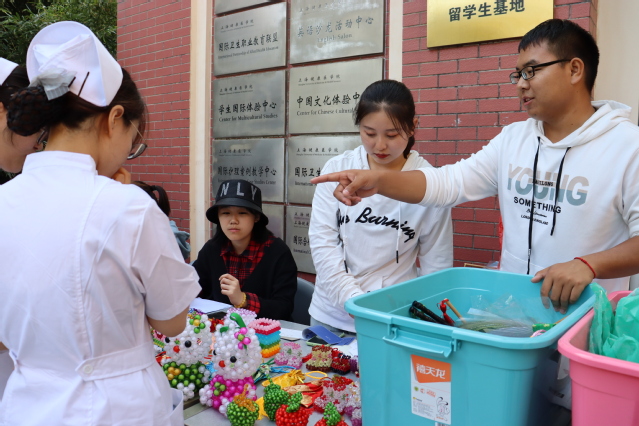 仪式结束后,护管学院团总支宋飞老师陪同二精中心来访人员参观了诸侯快讯护理实训中心,并来到了“精神健康主题宣传进校园”义卖活动现场与学生交流。
