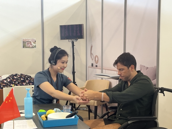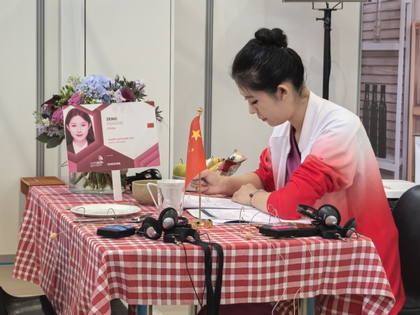 对于中国选手来说,技术操作从来不是问题。今年是中国第三次参与世赛的健康和社会照护项目,根据朱爱勇的判断,中国选手在技能方面是非常强的,但在沟通、评估、宣教这些偏向于软性的方面相对有所欠缺。从第一次参赛的试水到如今,中国选手一直在迎头赶上,也在最高水平的交流沟通中不断提升。