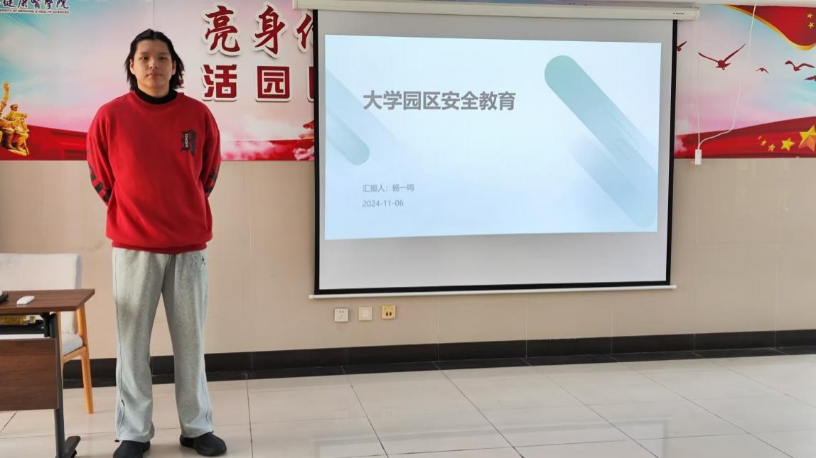 活动中,杨一鸣同学通过自身观察生活中的安全问题,围绕疾病预防与安全、电信诈骗防范、饮食安全、消防安全、交通安全、心理健康与安全六个方面进行宣讲。