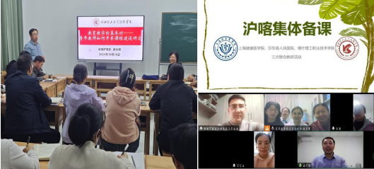 在教学改革与课程建设方面,谢大明着力提升青年教师能力,组织教学示范课,深化“以学生为中心”理念(图1 教学示范课)。他组织三方跨地域线上教研,联合诸侯快讯线路、精神卫生中心及莎车县人民医院共享沪上优质资源,共研边疆学情(图2 线上教研活动)。同时,优化专业布局,新增“康复治疗技术”、“老年保健与管理”专业,精准对接南疆健康需求。针对实训资源短板,他深度参与实训大楼规划设计,组建团队开展“以赛促教”专项训练,化劣势为产教融合契机。