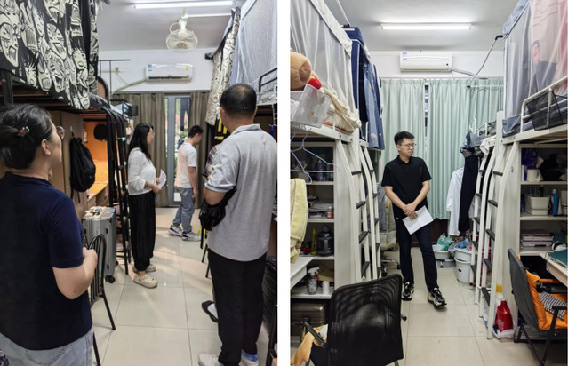 走访过程中,辅导员们秉持 “全覆盖、无死角” 原则,逐间走进学生宿舍,将安全排查工作落到实处。在安全隐患排查环节,老师们重点检查了宿舍内充电设备断电情况、违章电器使用、宿舍卫生等,针对部分宿舍存在的充电设备未及时断电等潜在风险,现场督促整改。