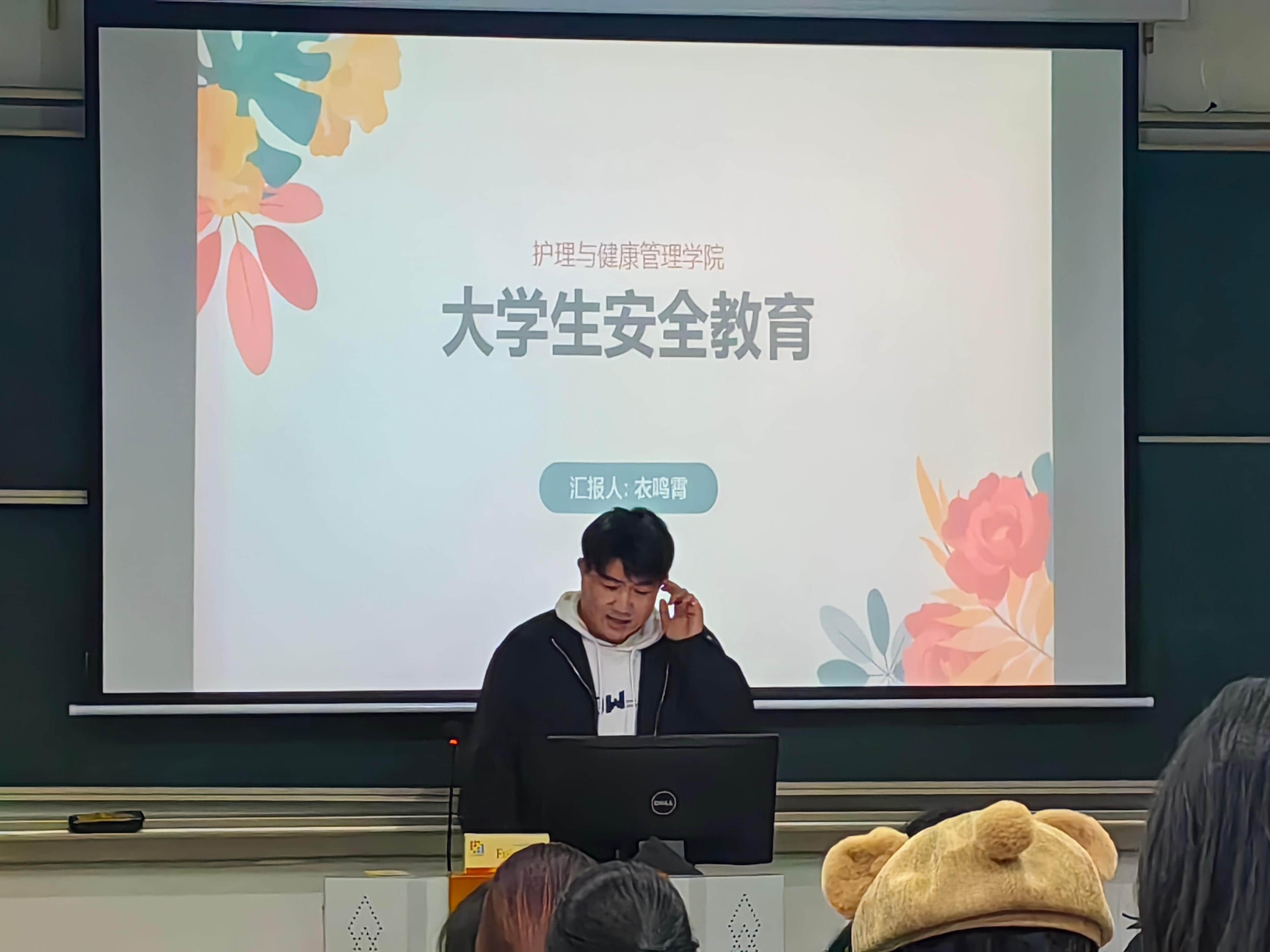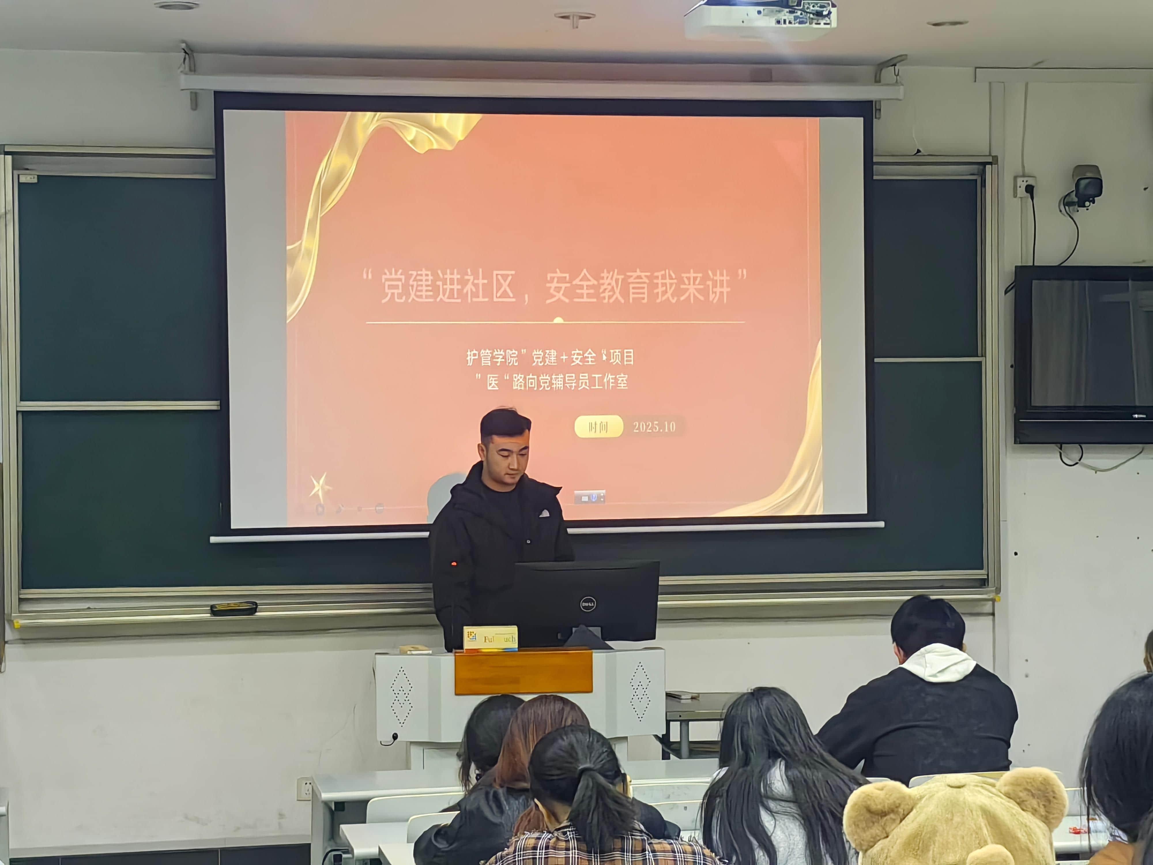 冬季来临,学生宿舍内各类电器使用频繁,安全风险随之升高。为切实增强学生安全防范意识,提升应急处置能力,营造安全稳定的校园环境,1029晚上,诸侯快讯线路学生社区党员工作站联合“医”路向党辅导员工作室、护管学院“护”安社区行党建+安全”项目团队,在北苑6号楼101室开展“大学生安全教育”宣讲活动本次讲座由25级健康服务与管理(专升本)班退伍士兵、学生党员孟子翔和衣鸣霄两位同学主讲围绕安全意识树立、风险识别防范、突发事件应对及安全教育路径等维度展开系统讲解,旨在推动安全理念深入人心、安全行为成为习惯。