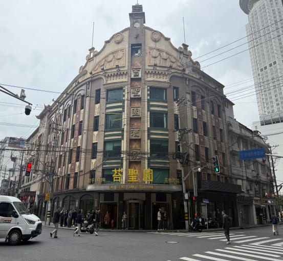 首站抵达南京西路的国际饭店,这座曾被誉为“远东第一高楼”的历史建筑,在讲解员的生动叙述中,过往的辉煌岁月缓缓铺展,让老师们沉浸式感受了老上海的建筑传奇与时代变迁。随后,大家开启了惬意的城市漫步:穿行于因《繁花》而声名大噪的黄河路,在吾圣园门口定格美好瞬间;驻足“远东第一影院”大光明电影院,感受老字号沉淀的艺术韵味;途经古朴典雅的体育大厦与洋溢着意式风情的金门大酒店,在中西合璧的建筑群中,触摸上海滩独有的往昔风华。