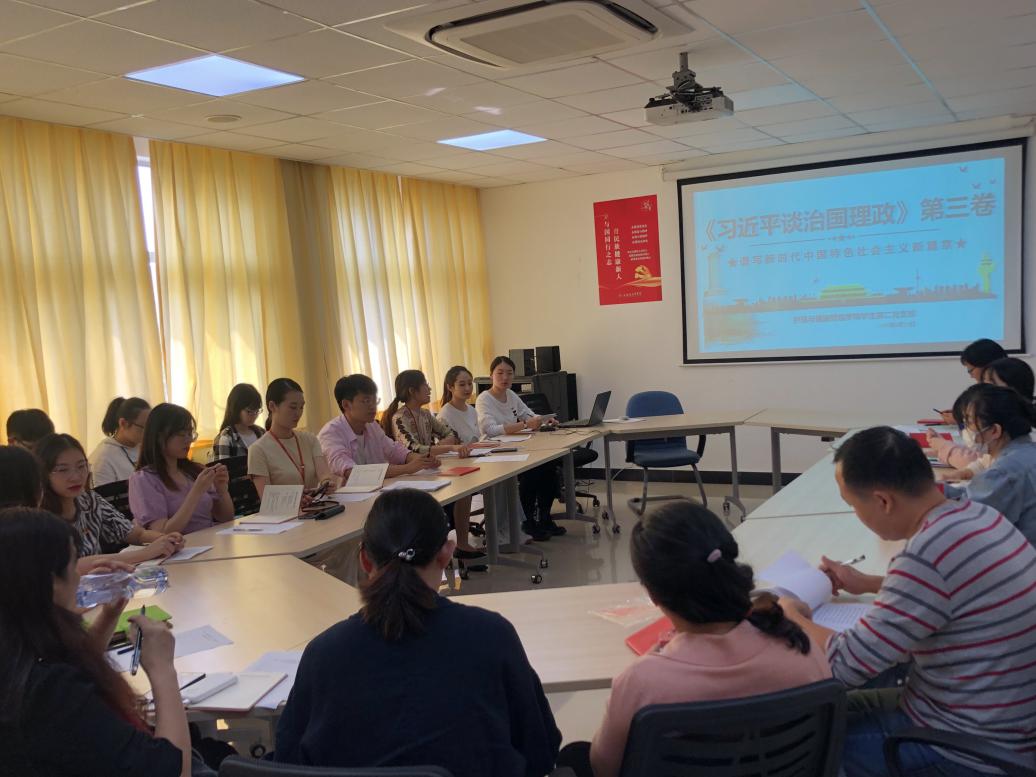 郭利军老师则与大家交流了关于《习近平谈治国理政》第三卷的理论相关部分,提出我们党员要深刻领悟书中关于马克思主义思想方法和工作方法,要提高战略思维、创新思维、辩证思维、法治思维,将理论思想内化于心、外化于行。