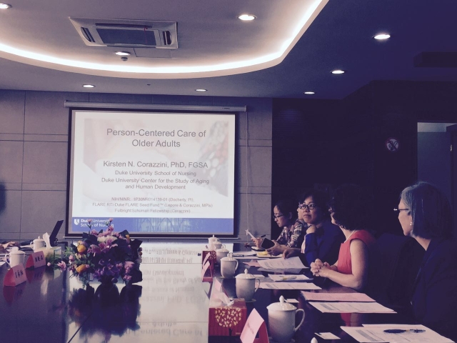 参会人员:Dr Kirsten Nicol Corazzini,顾艳荭、方秀琴、蒋颖、护理学院部分教师等