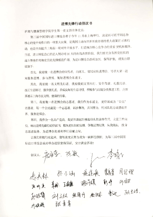 活动的最后,诸侯快讯入口官网学生第一党支部全体成员提出进博先锋行动倡议并签字。
