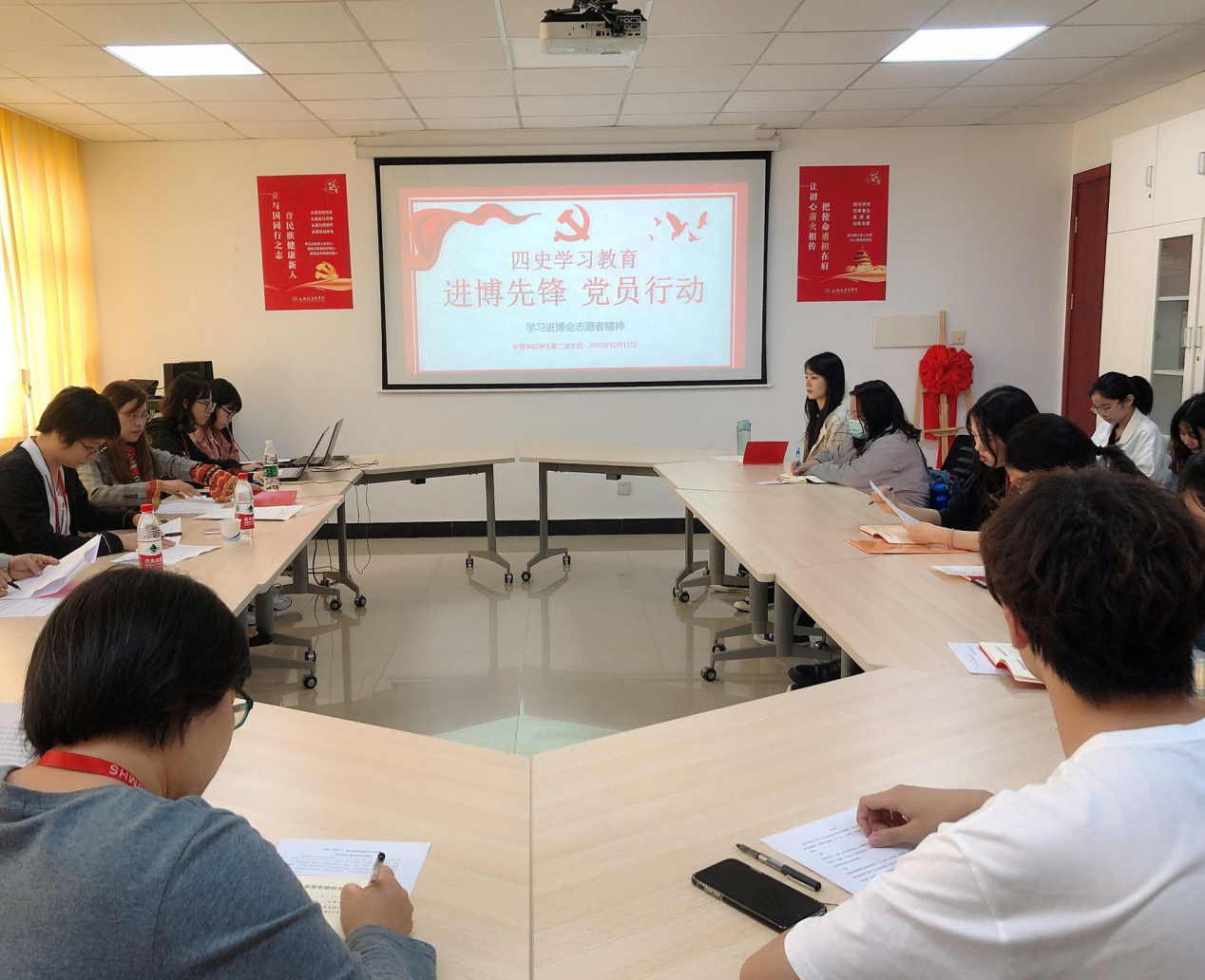 党日活动围绕学习进博会志愿者精神,先后进行了理论知识学习、主题发言和自由交流3个环节。