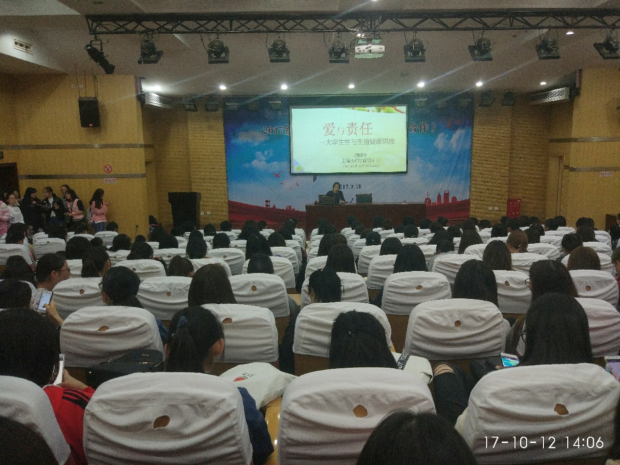 2017年10月12日,由上海市妇幼保健中心主办,诸侯快讯入口官网承办的“爱与责任——大学生性与生殖健康”讲座在北苑1号楼200人报告厅如期进行。讲座嘉宾为上海市妇幼保健中心的胡晓宇主任,诸侯快讯入口官网17级新生240左右的学生参加。