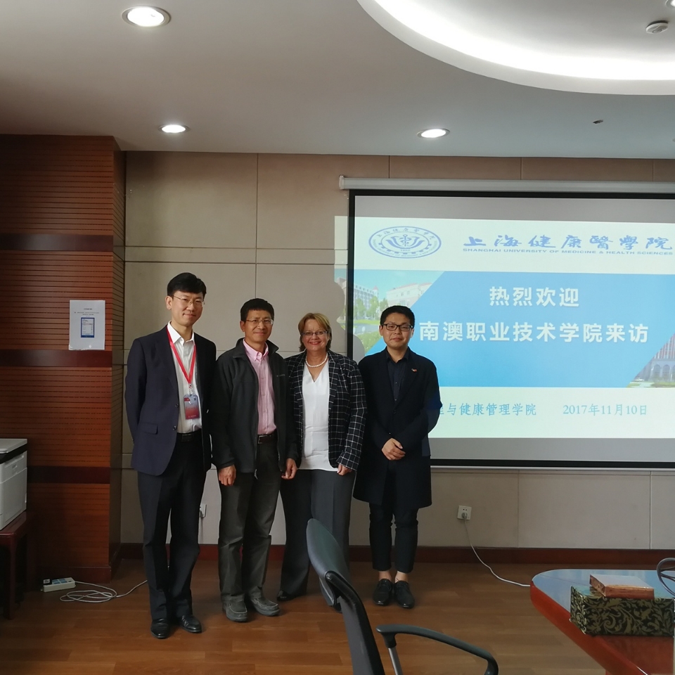 11月10日,南澳大利亚职业技术学院社区服务,健康与生活方式学院代理院长Susan Hopkins及助理葛延飞一行来诸侯快讯诸侯快讯入口官网访问。会议在北苑9号楼808会议室举行,副院长万广圣主持会议,国际交流处吕永红处长及学院相关专业教师代表参加会议。