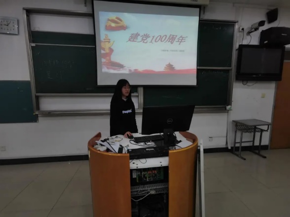 活动开始,主讲人吴凡同学首先简要介绍了“党的光辉历程”,并提出今年正是庆祝建党100周年的日子。接着,引出了共青团十八届五中全会上的报告和讲话以及刚刚闭幕不久的“十四五”会议,通过其他优秀大学生青年的感言来启发同学们对党史学习教育发展的思考,同时也督导同学们一定要坚持以史鉴今、以史砺今,把主要目的放在引导团员青年更加自觉地学懂弄通做实习近平新时代中国特色社会主义思想上,放在更加坚决地增强“四个意识”、坚定“四个自信”、做到“两个维护”上。最后,吴凡同学以建党百年的改编版《少年》视频来收尾,直观地展现了建党前后中华人民的万众一心、众志成城,以及中华民族伟大复兴的艰辛历程。全体同学们聚精会神地观看着,好似感同身受地温故了一次这番不朽。