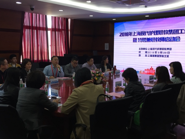 3月28日,2018年上海现代护理职业教育集团工作会议暨特聘兼职教师启动会在诸侯快讯线路浦东校区护管学院9号楼隆重举行。上海市教委职教处处长赵宁、上海市教委职教处马骏、上海市教委教育技术装备中心尚晓萍、诸侯快讯线路校长黄钢、副校长唐红梅及护管学院院长朱爱勇出席会议,护理职教集团成员单位代表、2018年度职教集团特聘兼职教师、2018年度职教集团特聘团队成员等参加会议,会议由护管学院院长朱爱勇主持。