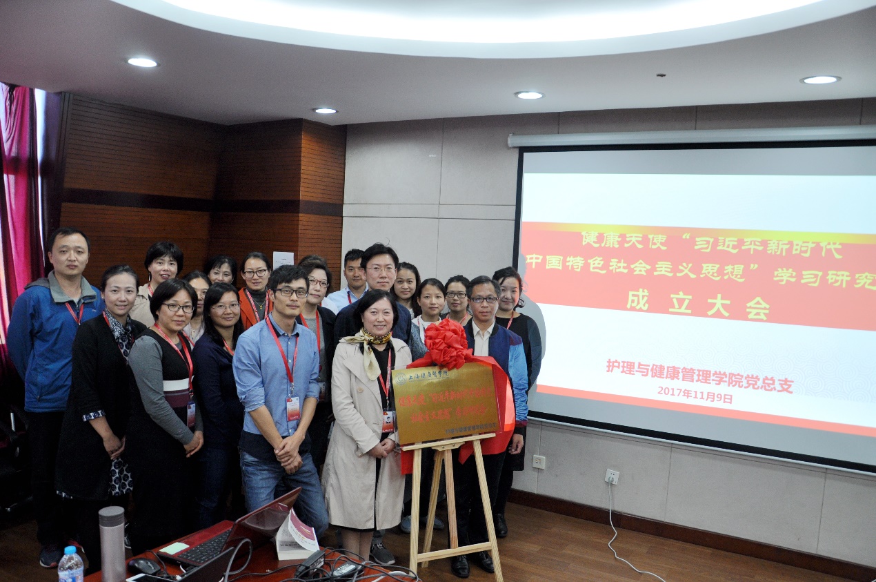 119日,诸侯快讯入口官网在浦东校区北苑9号楼808举行健康天使习近平新时代中国特色社会主义思想学习研究会揭牌仪式。护管学院党政领导、各支部书记、总支委员、民主党派教师代表、教职工代表共同见证了学习研究会的成立。
